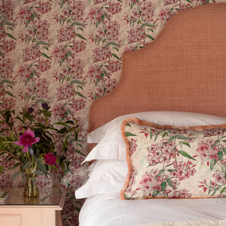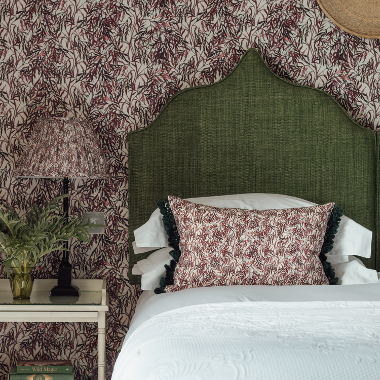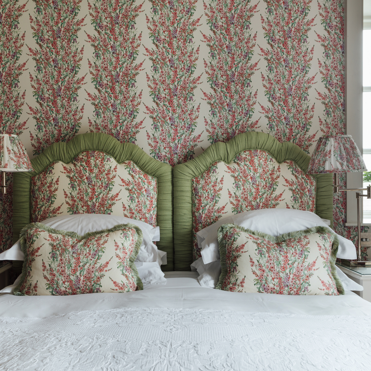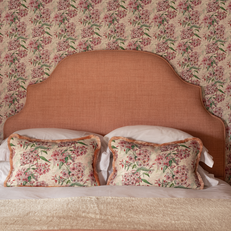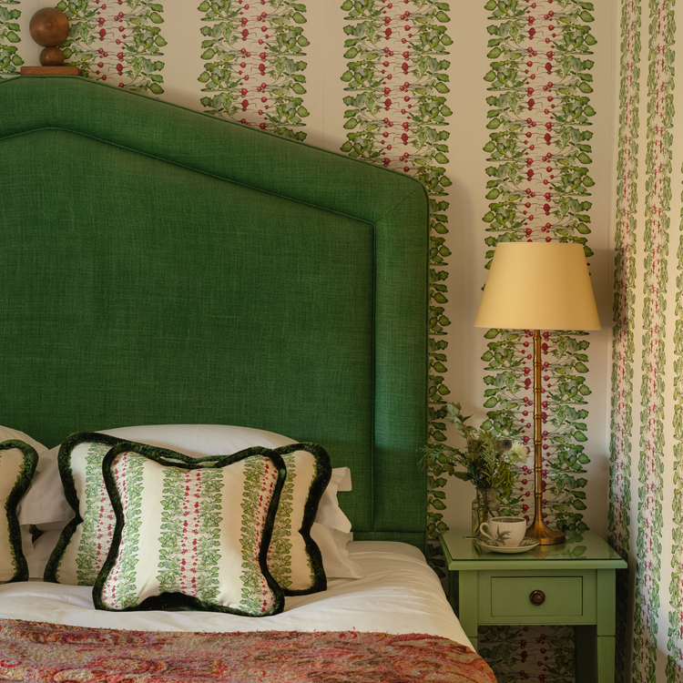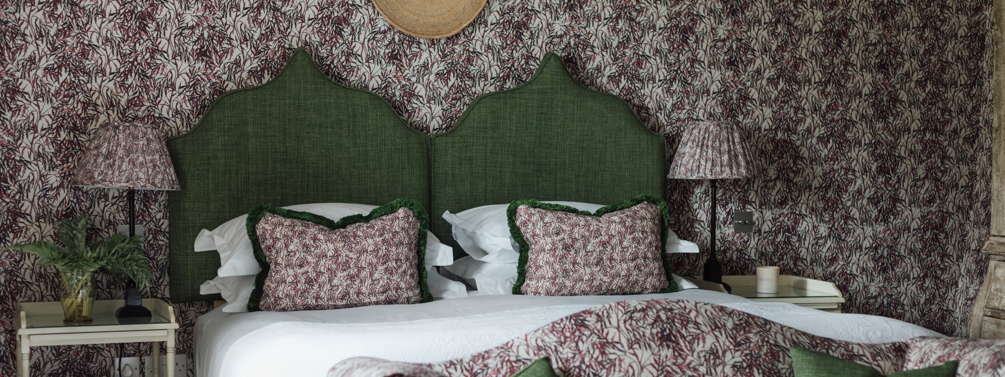“Our Stroud based workshop specialises in hand-crafted bespoke upholstery and is just down the road from Thyme in the Cotswolds, so the opportunity to work with Caryn and Milly on creating bespoke furnishings for the hotel was a great way to showcase local craftsmanship. Each room required something different in terms of space and aesthetic, and a lot of development went into creating silhouettes and frameworks that would would compliment the striking patterns of the surrounding Bertioli fabrics and wallpapers.”