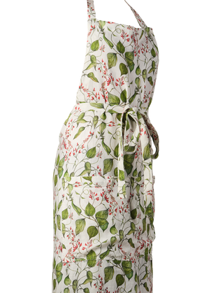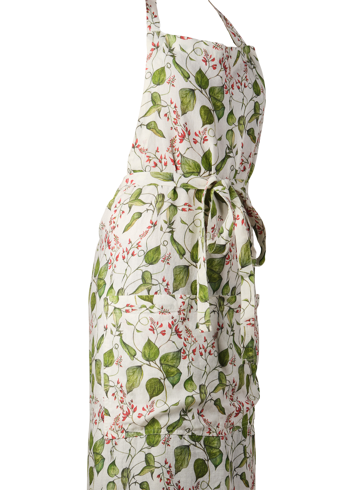 Made in our partner factory in Lithuania using European linen. The factory is a vertical system, taking linen in its raw flax form before spinning into a yarn and weaving to a cloth. The fabric is then digitally printed and sewn by hand into the final piece. The digital printing reduces water wastage and the vertical factory means carbon emissions of transportation are reduced.
