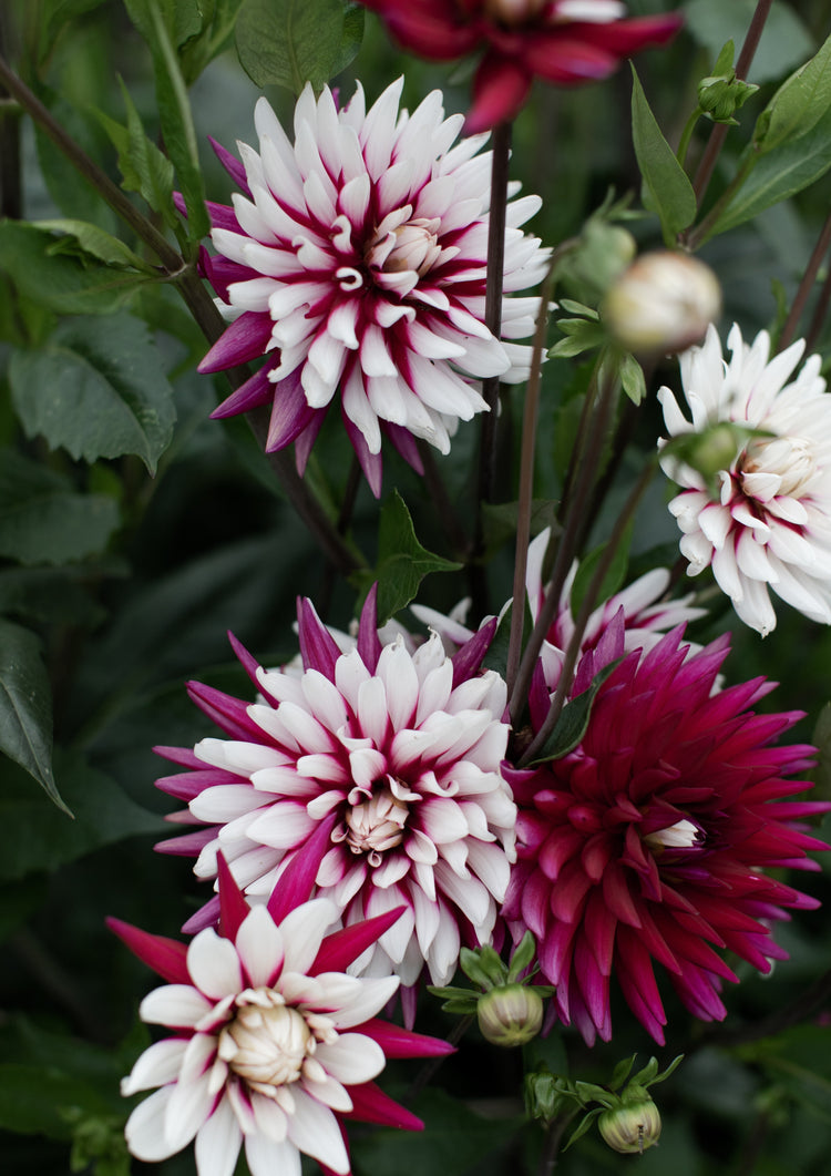 Dahlia, a flamboyant bloom of Aztec origin, is known for its striking symmetry and wide range of vivid colors. Revered since the 16th century, its kaleidoscopic petals with velvety tones unfurl from midsummer to early frost. A true garden muse, the Dahlia brings bold structure to seasonal gardens and botanical opulence to a florists vase. The Dahlia beds at Thyme are mulched with the fleeces of our Black Welsh Mountain sheep, both beautiful and effective.